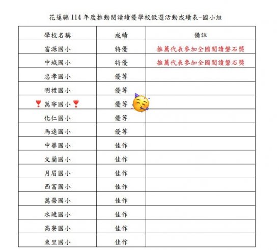 恭喜萬寧國小在「推動閱讀績優學校徵選」獲得㊗️【優等】㊗️